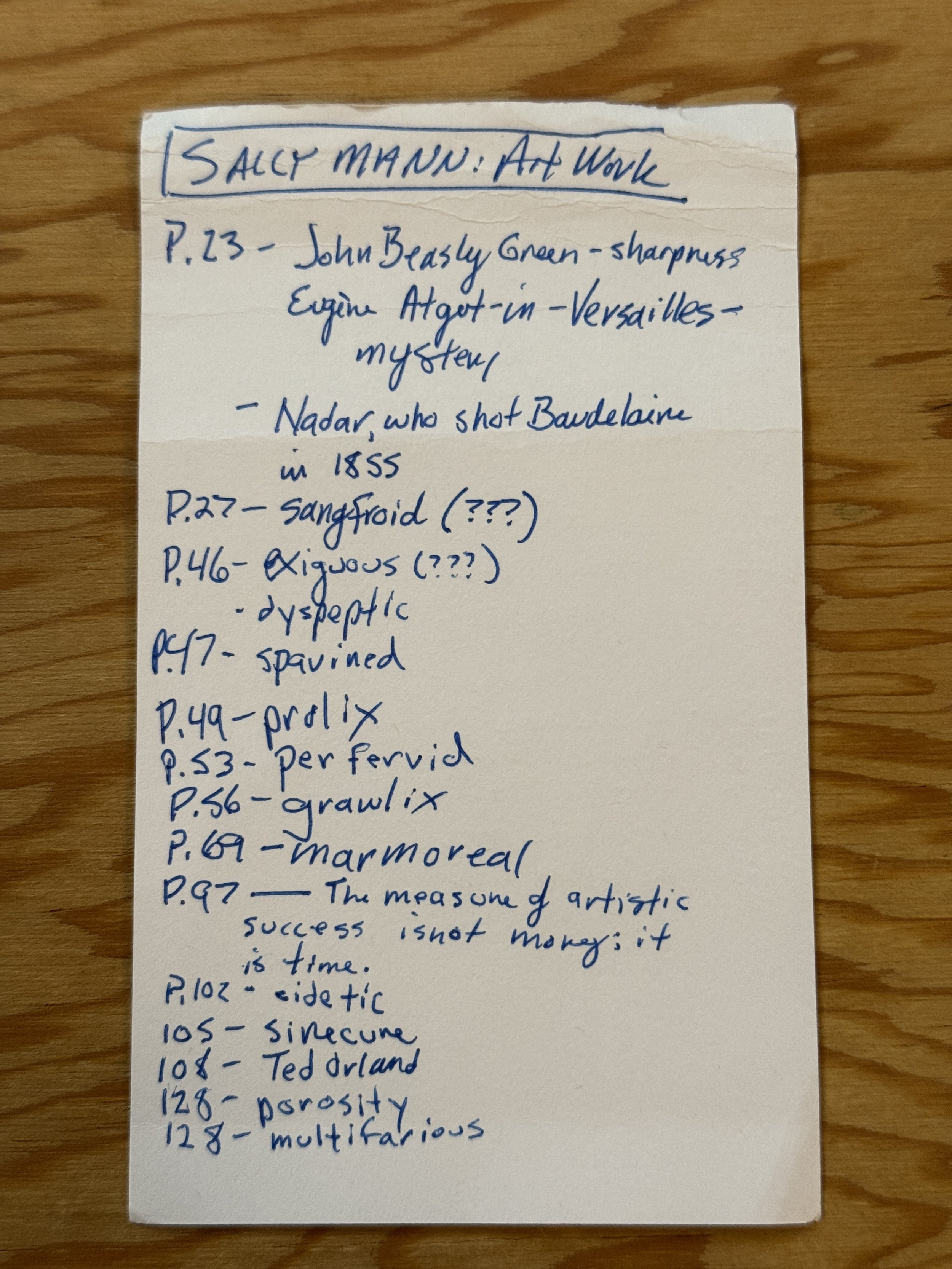 Some Notes and Words I learned or remembered reading Sally Mann's book 'Art Work: On the creative life'